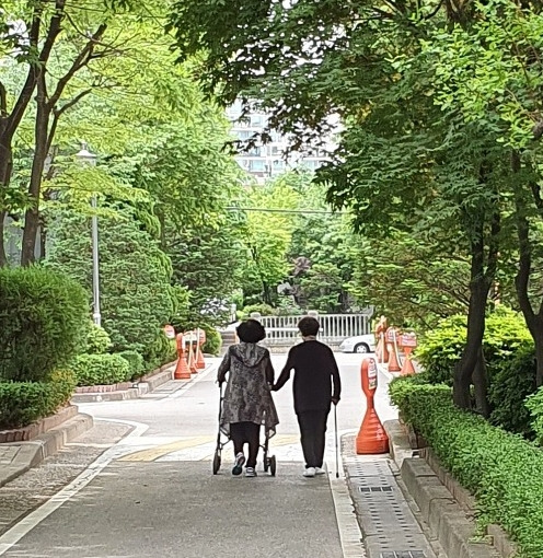 아래 사진은 그 녹음 아래로 어르신 두 분이 나란히 걸어가는 모습인데, 정말 친한 친구나 자매처럼 보였다.
