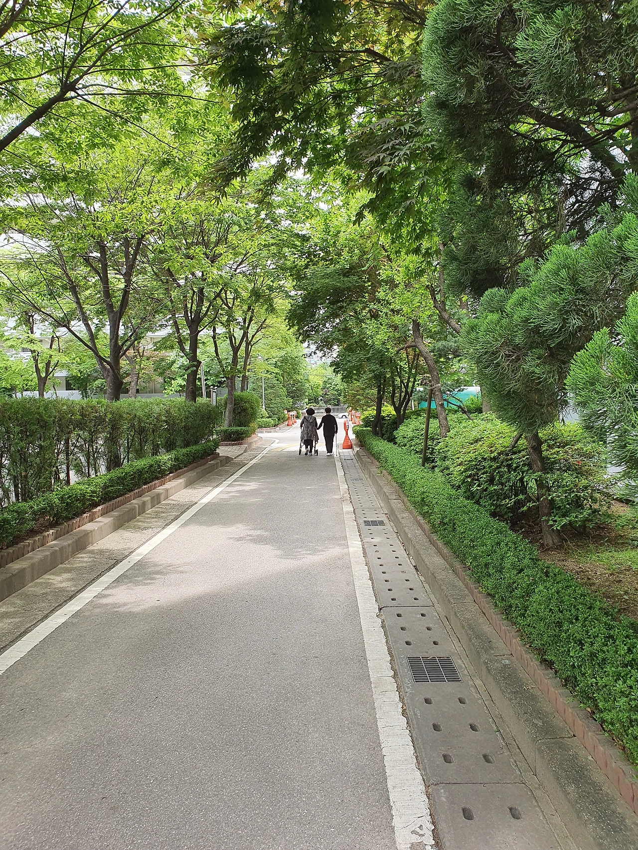 이 거리는 이촌 아파트 110동 뒷길인데, 산책하며 이곳을 매일 다녔지만 오고 가는 차량은 이따금 마주쳤어도 사람과 마주친 적은 정말 거의 없었다. 100미터 가까이나 되는 이 거리는 항상 이렇게 텅 빈 도로 상태로 오직 햇살과 그늘만이 가득한 그런 모습이었던 것이다.