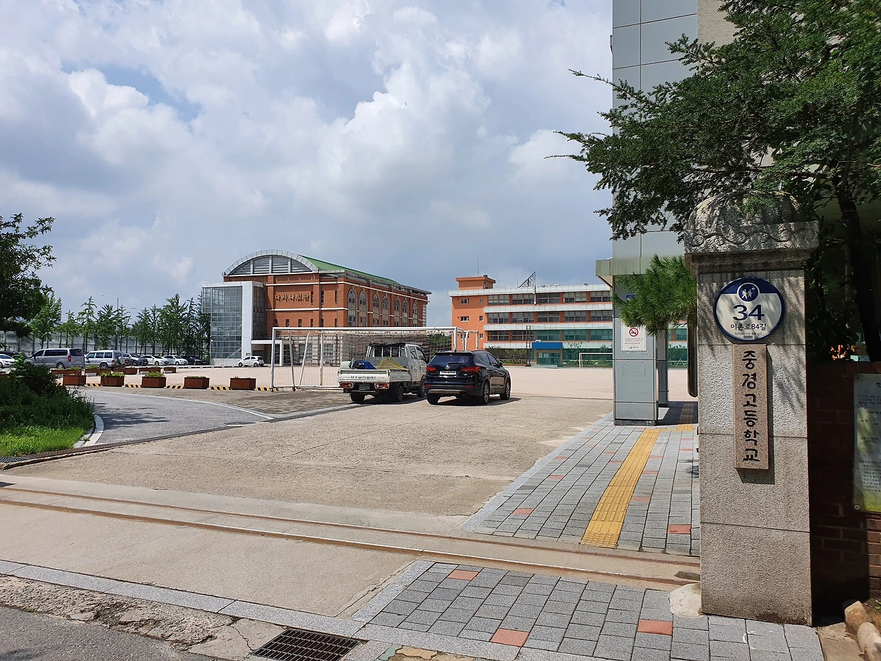 사진) 정문에서 바라본 중경 고등학교 운동장 최근 모습. 좌측 건물만 새로 추가됐을 뿐 조카와 함께 방문했던 시절의 한강 중학교 운동장 모습과 별 차이가 없다.