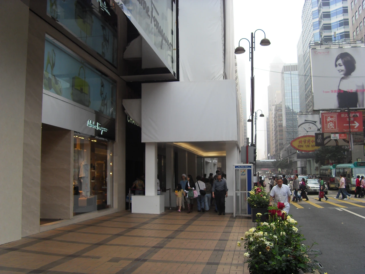 Tsim Sha Tsui에 위치한 쇼핑몰 Harbour City의 외부 모습. 사진에 보이는 Salvatore Ferragamo 매장 외에도, 많은 유명 명품 매장들이 이 쇼핑몰에 입점해 있는데, 고객 대부분은 중국 본토에서 온 관광객들로 거의 80~90%가 중국인이었다.
