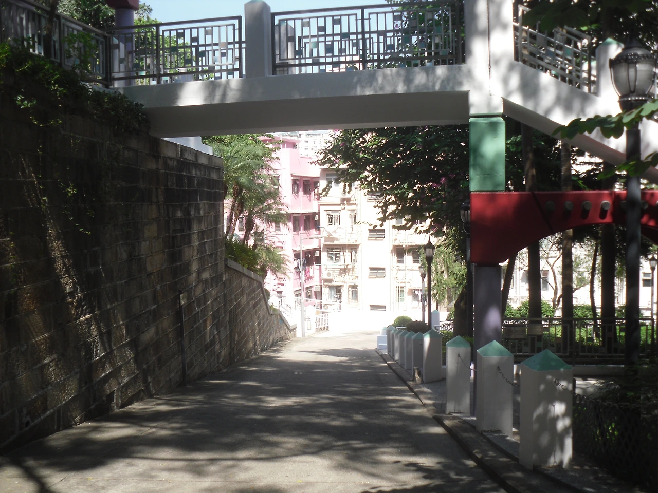 의학 박물관 주변의 인적이 드문 한적한 거리, 홍콩섬은 중앙에 산 봉우리가 있고 해변으로 가면서 점차 낮아지는 구조라, 해변가에서 조금만 산 쪽으로 가도 이렇게 비탈진 언덕길이 많다. 홍콩섬과 해변 중간 지대를 Mid-Levels라 부르는데, Mid-Levels 지역에서 흔하게 보게 되는 풍경이다.