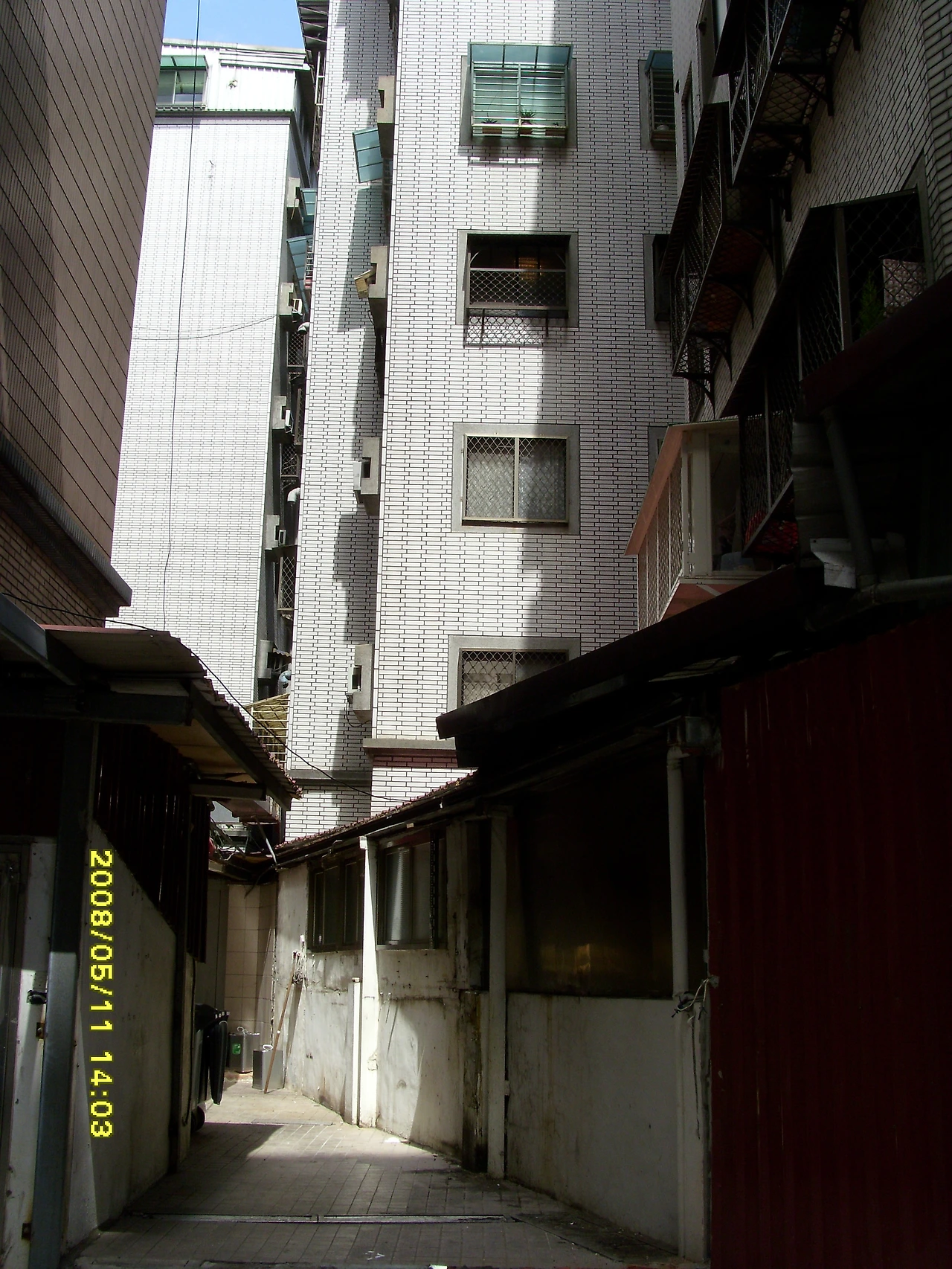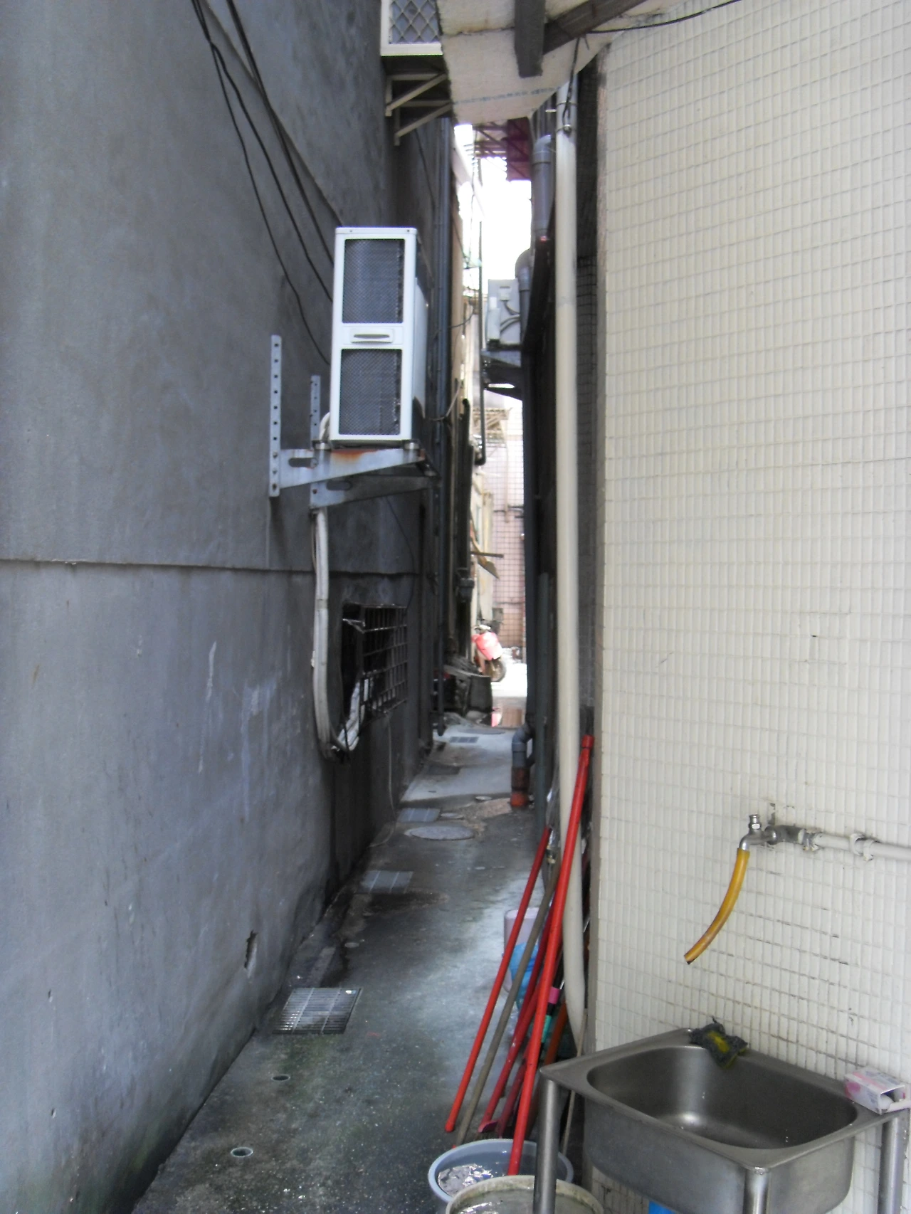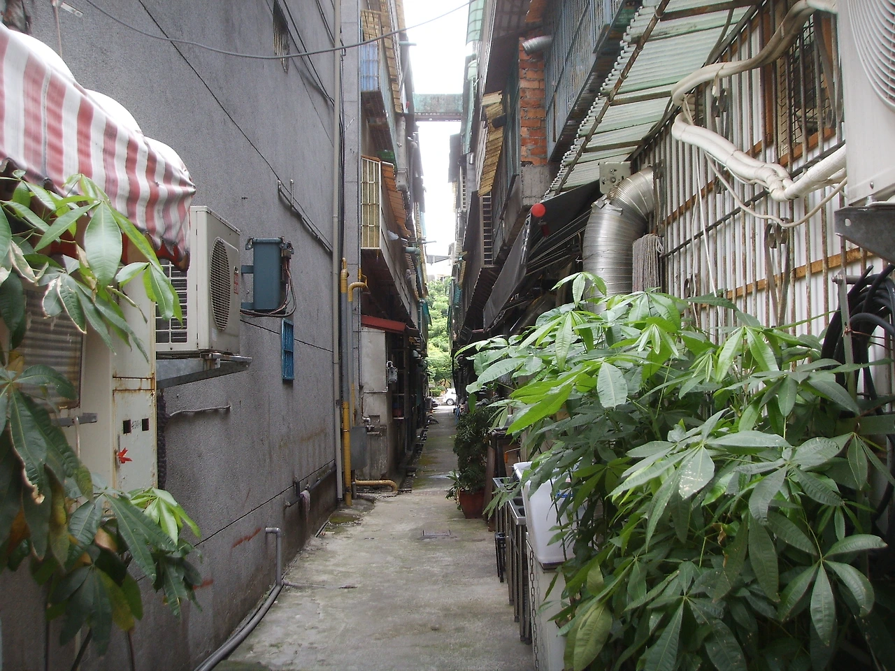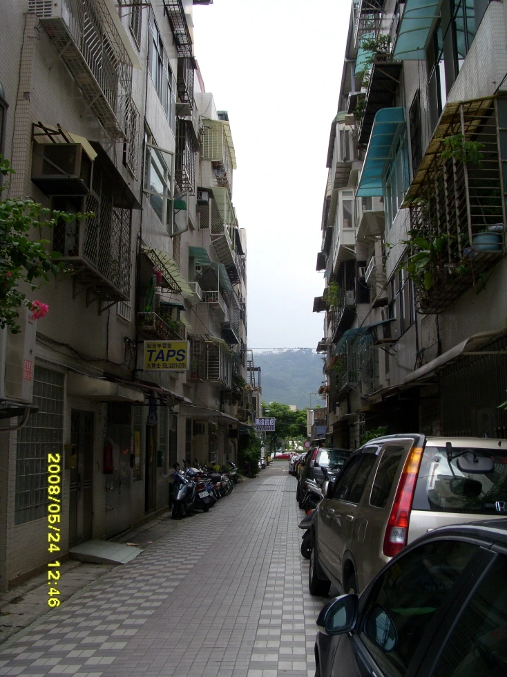 시내의 매우 좁은 골목길. 오래된 건물이나 주택이 많은 타이베이에는 주택 사이의 이런 좁은 골목길도 역시 많았다. 서울에서도 강북의 오래된 동네에 가면 아직도 이런 골목을 많이 볼 수 있다.