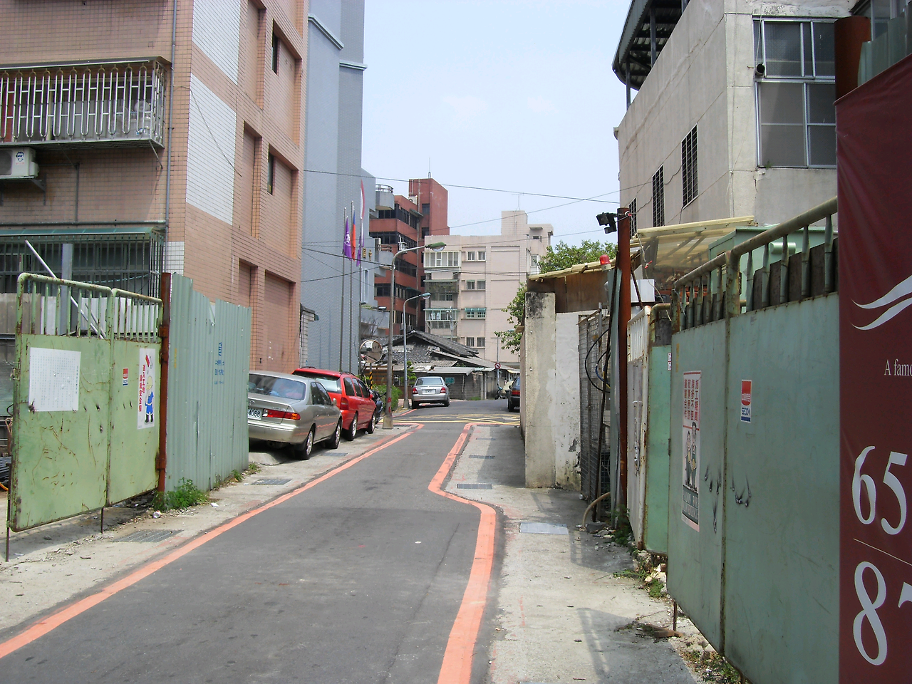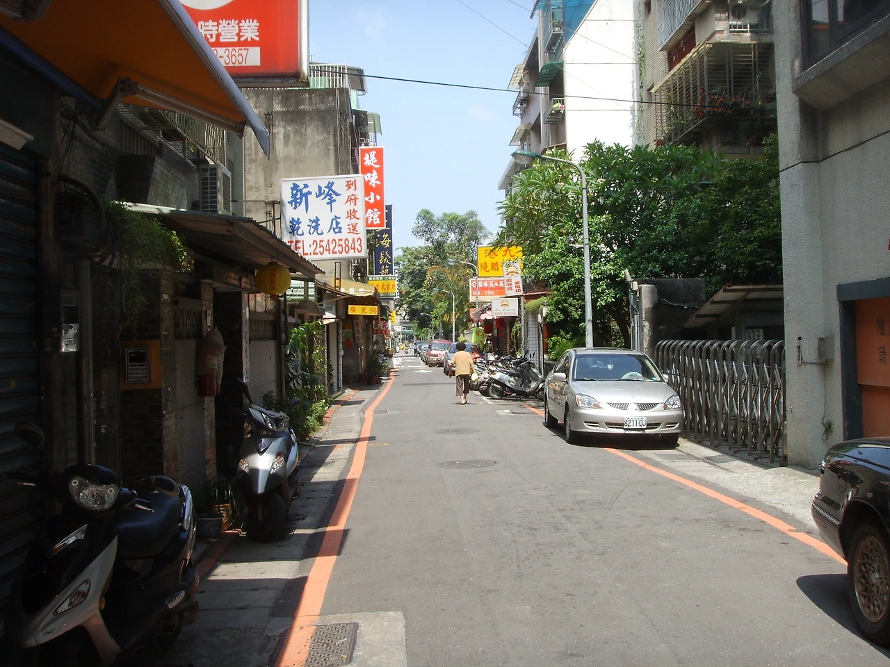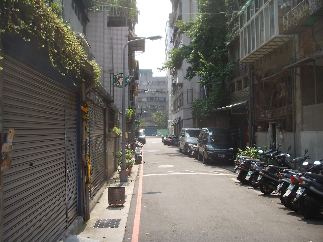 시내의 매우 좁은 골목길. 오래된 건물이나 주택이 많은 타이베이에는 주택 사이의 이런 좁은 골목길도 역시 많았다. 서울에서도 강북의 오래된 동네에 가면 아직도 이런 골목을 많이 볼 수 있다.