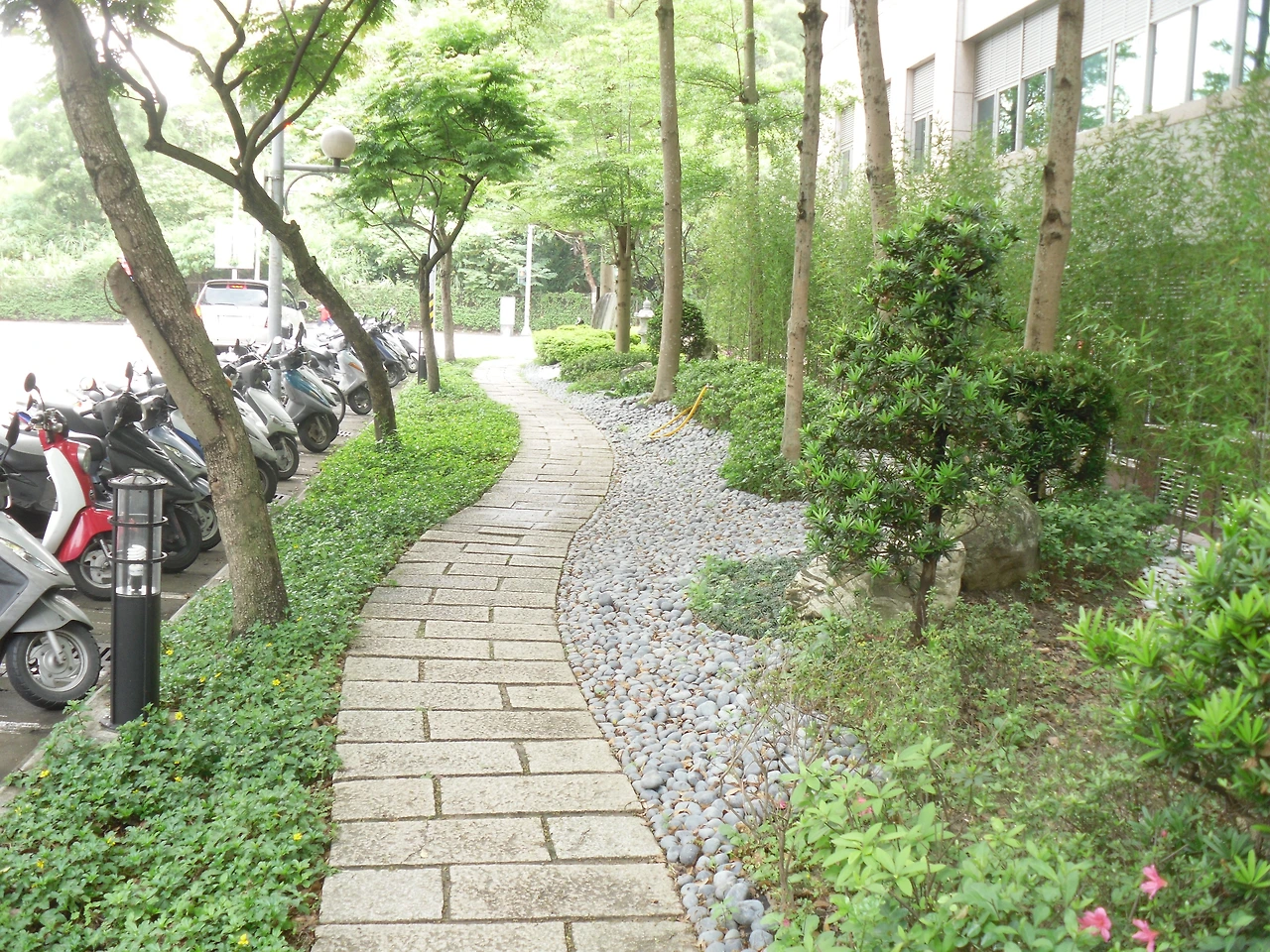 타이베이에는 낡은 건물들도 많았지만, 비교적 최근에 지어진 깔끔한 건물들도 있었는데 그렇게 깔끔한 건물 주변에는 위 사진에서 보는 것처럼 건물 주변을 작은 공원으로 정성껏 꾸며 놓은 곳도 꽤 있었다.