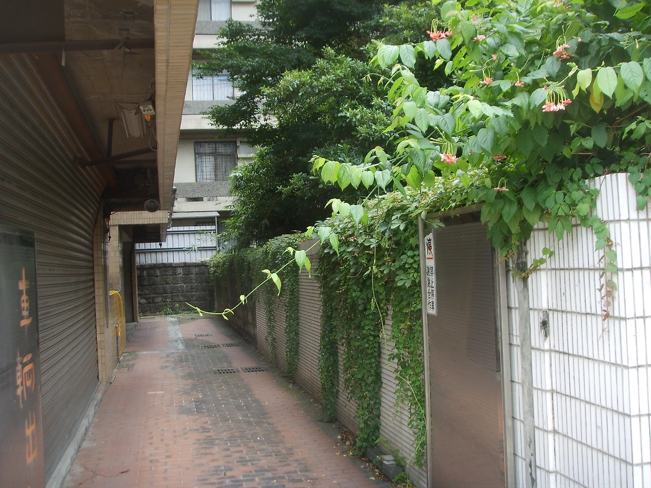 막다른 골목길. 사진 우측에 '禁止停車(정차 금지)'라고 적혀 있는 문구가 있는 것을 보면, 이 막다른 골목에도 주차를 하는 사람들이 있었던 모양이다. 서울이나 타이베이나 주차는 어디에서도 문제인 모양이다.
