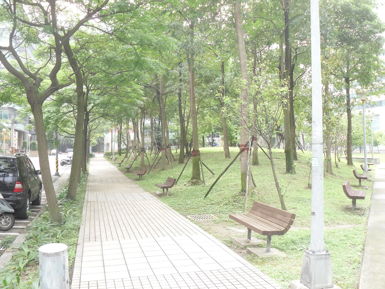 거리의 인도 옆에 조성된 녹지 공간. 나무에 버팀목이 아직 놓여 있는 걸로 봐서 아마 조성된 지 오래되지 않은 것 같다. 타이베이에는 비록 작아도 시내 곳곳에 울창한 나무로 우거진 작은 공원들이 꽤 많이 있다. 서울과는 다른 점인데 꽤 부러웠던 기억이 있다.