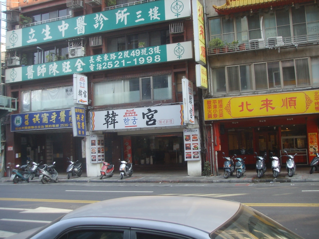 한인교회 앞 송지앙루 모습. 한인교회는 좌측의 SUZUKI라는 간판이 보이는 왼쪽에 있다. 교회에 좀 일찍 도착하면 사진 우측에 보이는 Dante Coffee라는 간판이 있는 곳에서 커피 한잔 하고 예배 보러 가곤 했었다.