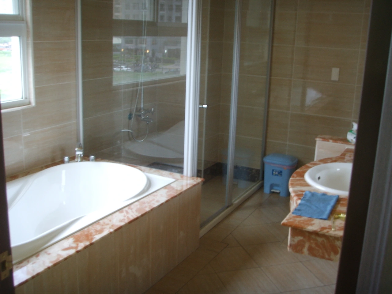 호텔에서 서쪽 바다 방향으로 찍은 사진. 거대한 선박들이 정박되어 있는 모습을 볼 수 있는데, 가오슝 항구는 대만에서 물동량이 가장 많은 항구로, 2000년대 초반까지만 해도 물동량 순위 세계 4~5위권에 있던 항구였다. 하지만 중국 경제가 급성장함과 함께 상하이, 선전, 광저우, 티엔진 같은 중국 본토 항구들의 물동량이 급증하면서 가오슝의 순위는 점차 하락하기 시작했고 2008년부터는 10위권 밖으로 밀려났다.