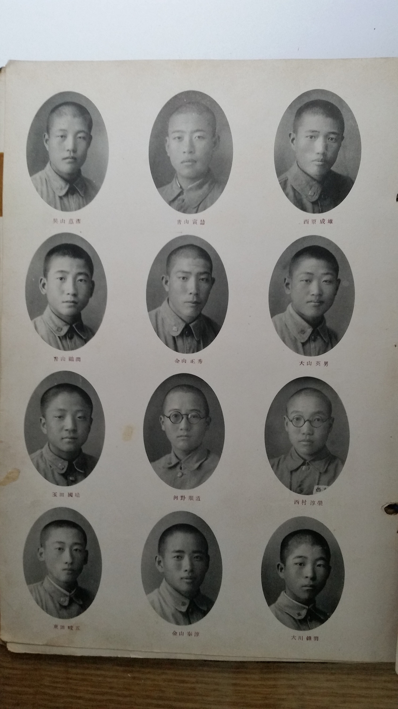아버님의 고교 졸업 앨범. 밑에서 두 번째 줄 가운데가 아버님이다. 창씨개명이 강요되던 시절이라 그런지 학생들 이름이 모두 일본식으로 네 자로 되어 있다.