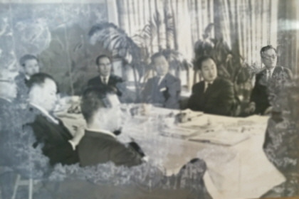 우측 끝이 아버님이다. 어떤 회의에 배석하셨을 때 찍은 사진인 것 같다. 사진이 흐려서 명확하지는 않지만 좌측 끝 상석에 앉으신 분과 사진 중앙에 앉으신 분은 웬만한 사람들은 알 수 있는 유명하신 분들과 인상이 비슷한데, 실제 이분들이 그분들인지는 모르겠다.