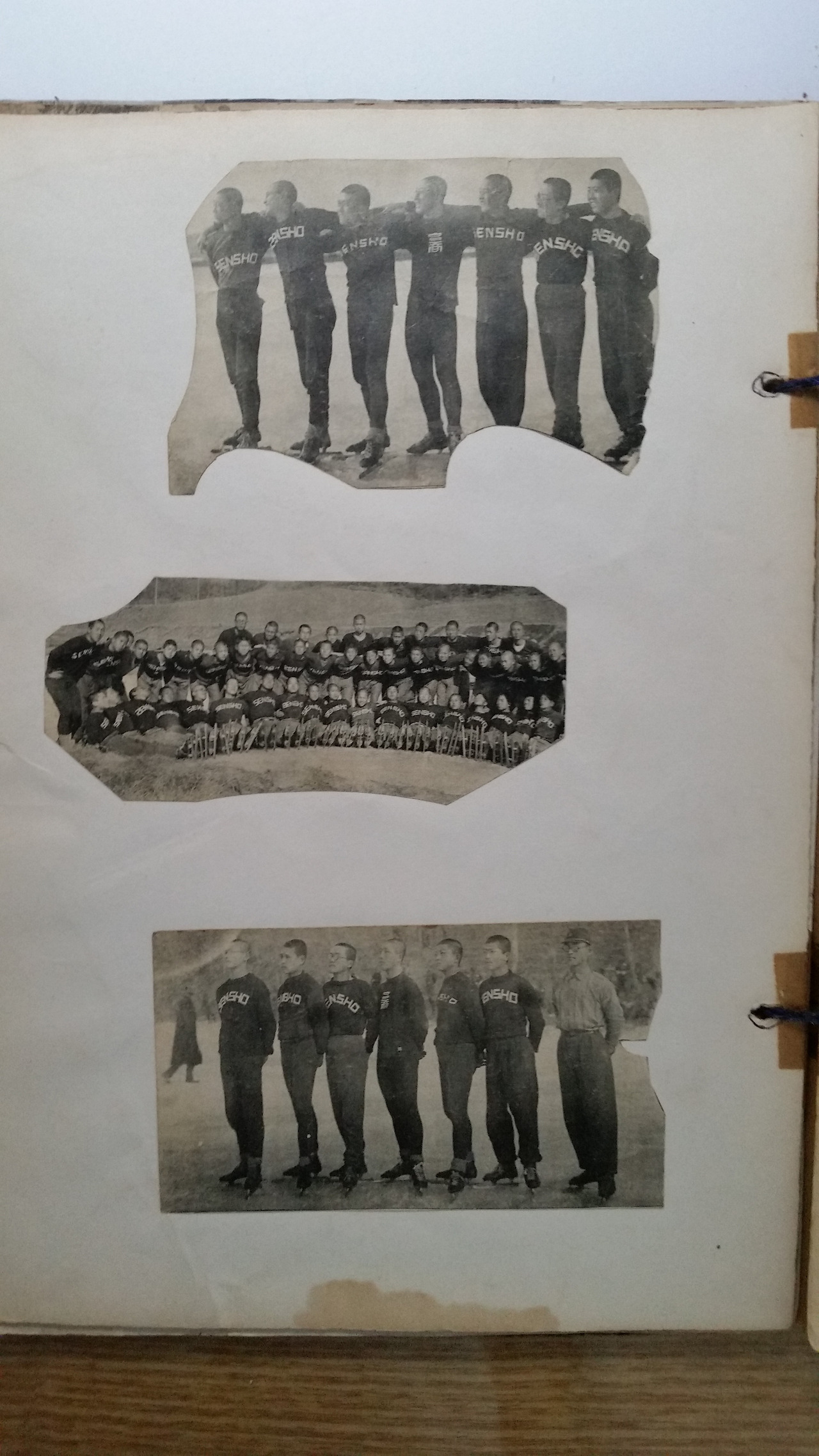 아버님의 고교 졸업 앨범. 아버님 고향 평안북도가 추운 곳이라 그런지 학교에 빙상부도 있었던 모양이다. 왼쪽 끝 사진 맨 위 우측에서 2번째가 아버님이다. 가운데 사진에는 어르신이 계신데 그 아래에는 '身老心不老' 즉 '몸은 늙어도, 마음은 늙지 않는다'라는 문구가 적혀 있다.