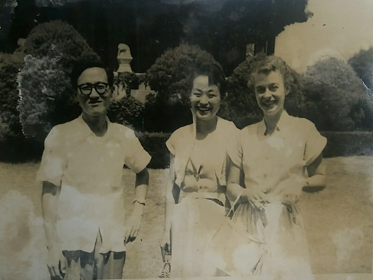 서울 어느 고궁에서 어머님(사진 중앙)과 함께 찍은 사진. 오른쪽의 서양인은 어머님 친구분이라 하시는데 어머님도 그녀가 미국인이라는 것만 기억하시고, 그 외에는 누구인지 어떤 관계인지 전혀 기억을 못 하신다.