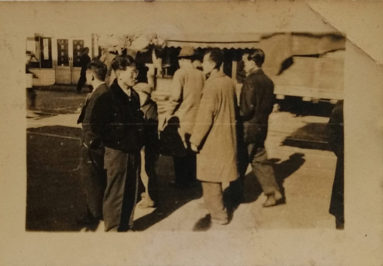 사진 좌측에 안경을 쓰고 계신 분이 아버님인데 특이하게도 옆면의 모습이 찍힌 사진이다. 무엇을 응시하시는지 한참 바라보고 계신데, 어찌 보면 '시간여행자'의 모습이 우연히 사진에 찍힌 것 같은 느낌이다.