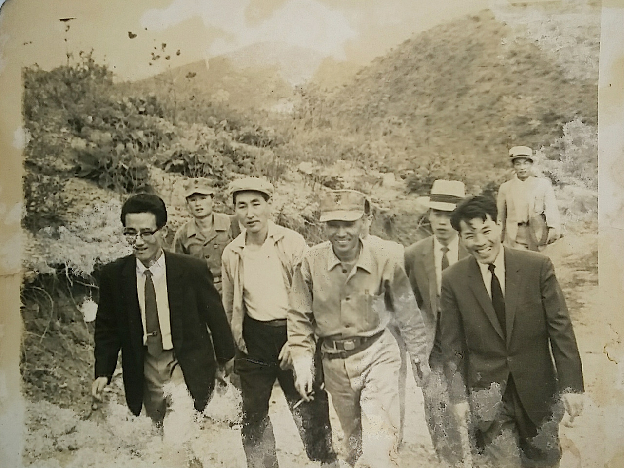 30대 후반쯤 되어 보이는 것 같은데, 어딘가 군부대를 방문할 때 찍은 사진인 것 같다. 오른쪽 사진의 군인은 군모를 자세히 보면 준장 계급을 달고 있다. 좌측 사진의 우측 끝, 우측 사진의 좌측 끝에 계신 분이 아버님이다.