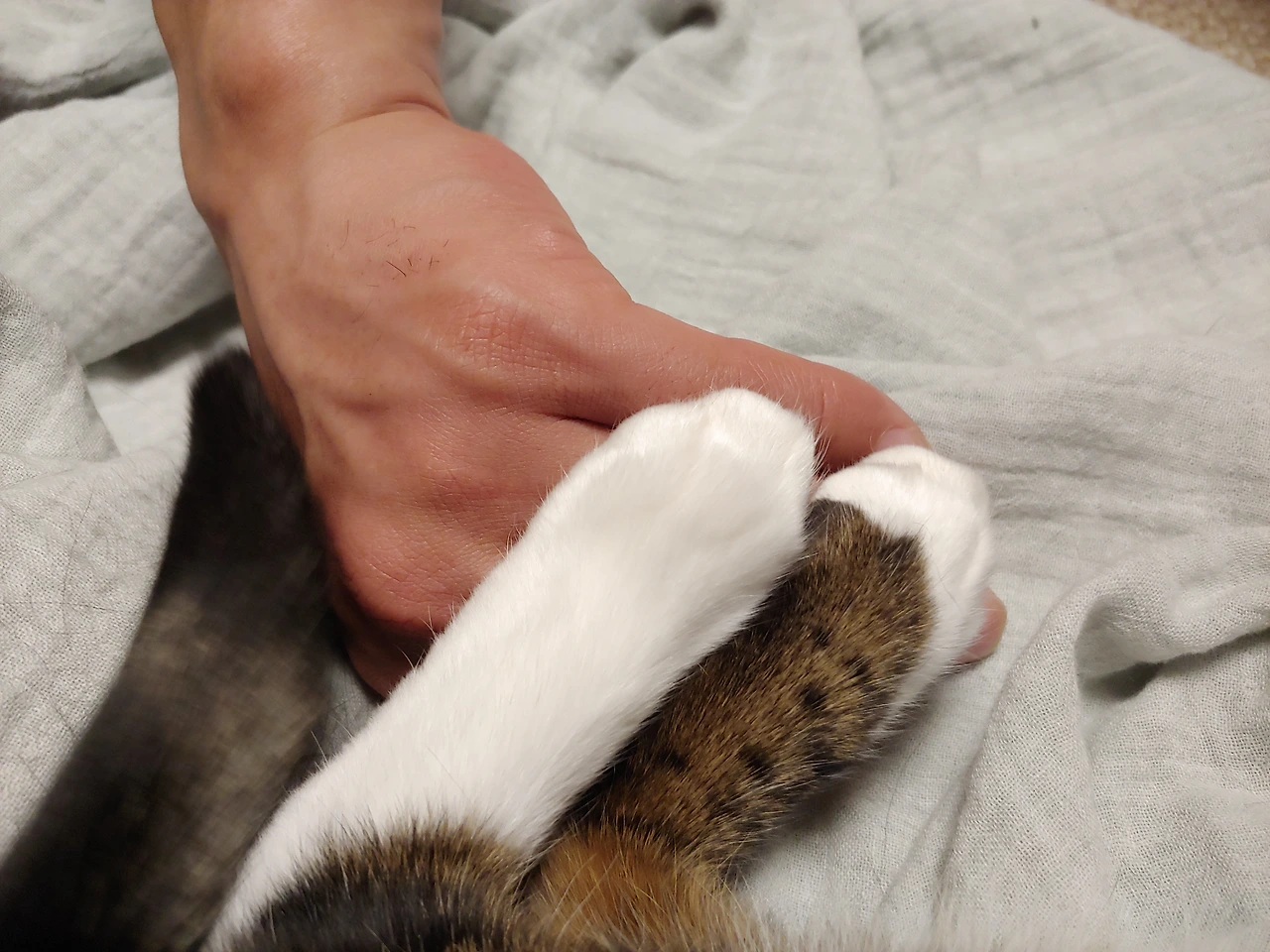 뒷발은 아빠 손에 가지런히.