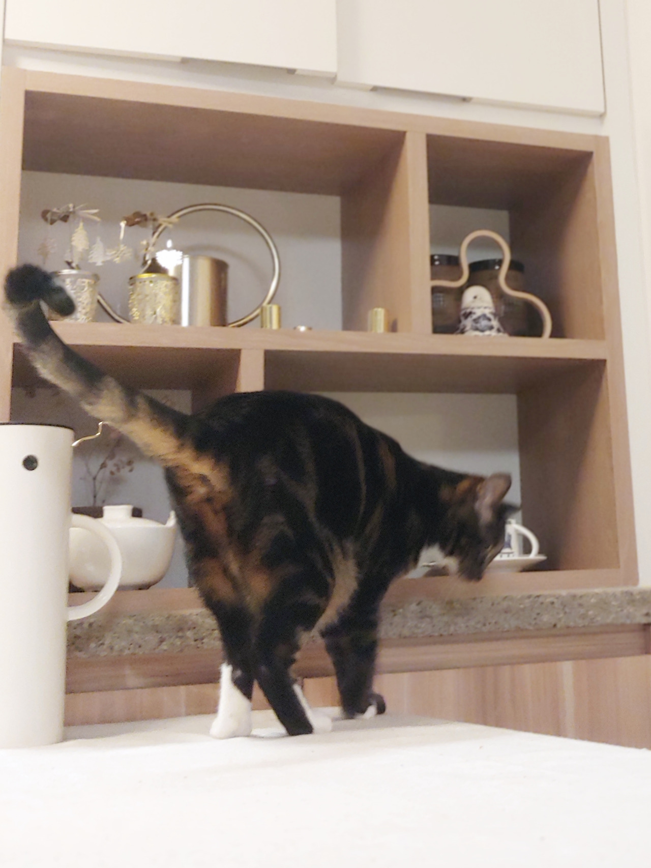 어스름한 저녁, 슬슬 깨어나는 고양이 딸.