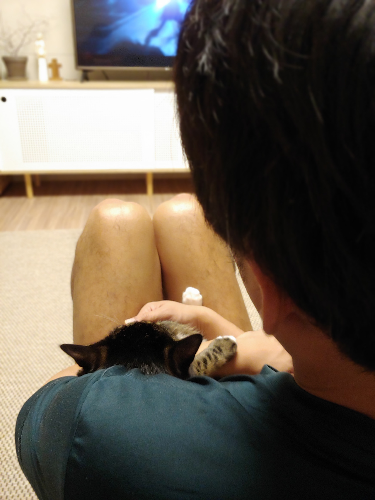 아빠 품에 안겨 티비 시청 중.