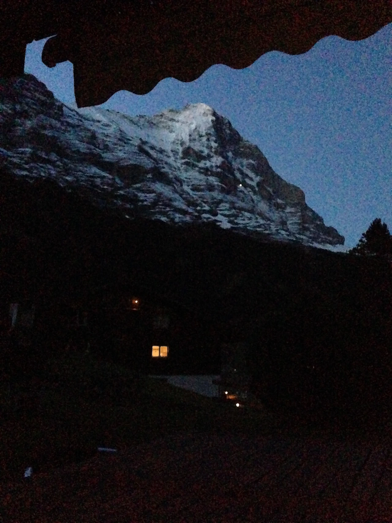 어둑한 그림자가 큰 걸음으로 성큼 다가오고 있었다. 우리 집도, 건너집도 앞 기슭에 점점이 박힌 많은 집들도 하나 둘 불을 밝히는 시간. 이렇게 그린델발트에서의 또 하루가 지나갔다.