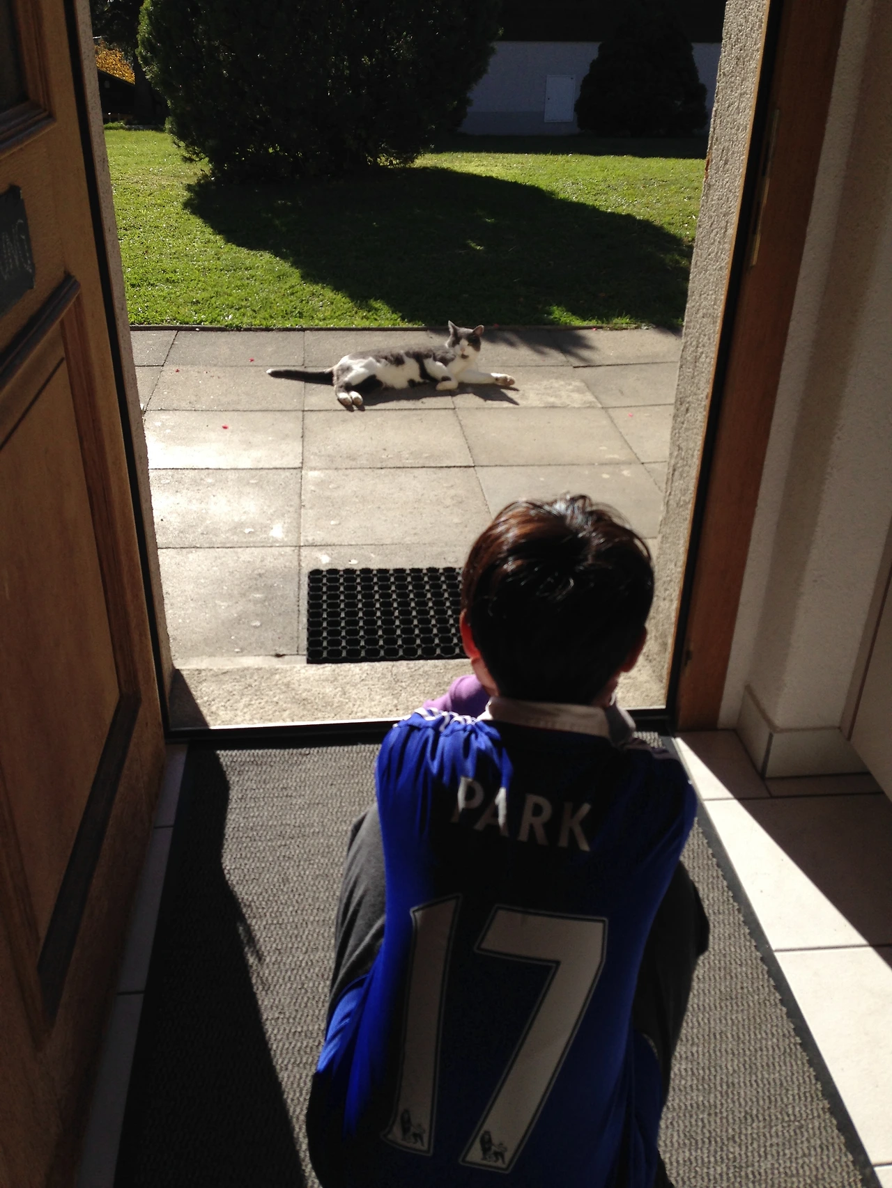 그와중에 녀석은 입고 있던 상의를 벗어 던지고는 여행길에 본인 몫으로 산 유니폼으로 재빠르게 갈아입었다. 하의와 타이즈까지 입으려는 것을 나의 만류로 거두었다. 백넘버는 아이의 요청을 받아들여 어릴때부터 속해있던 유소년 축구단의 백넘버를 마킹했다. 몸값 꽤나 나간다는 프리미어 리그 플레이어가 느닷없이 스위스 시골마을에 납시었다.