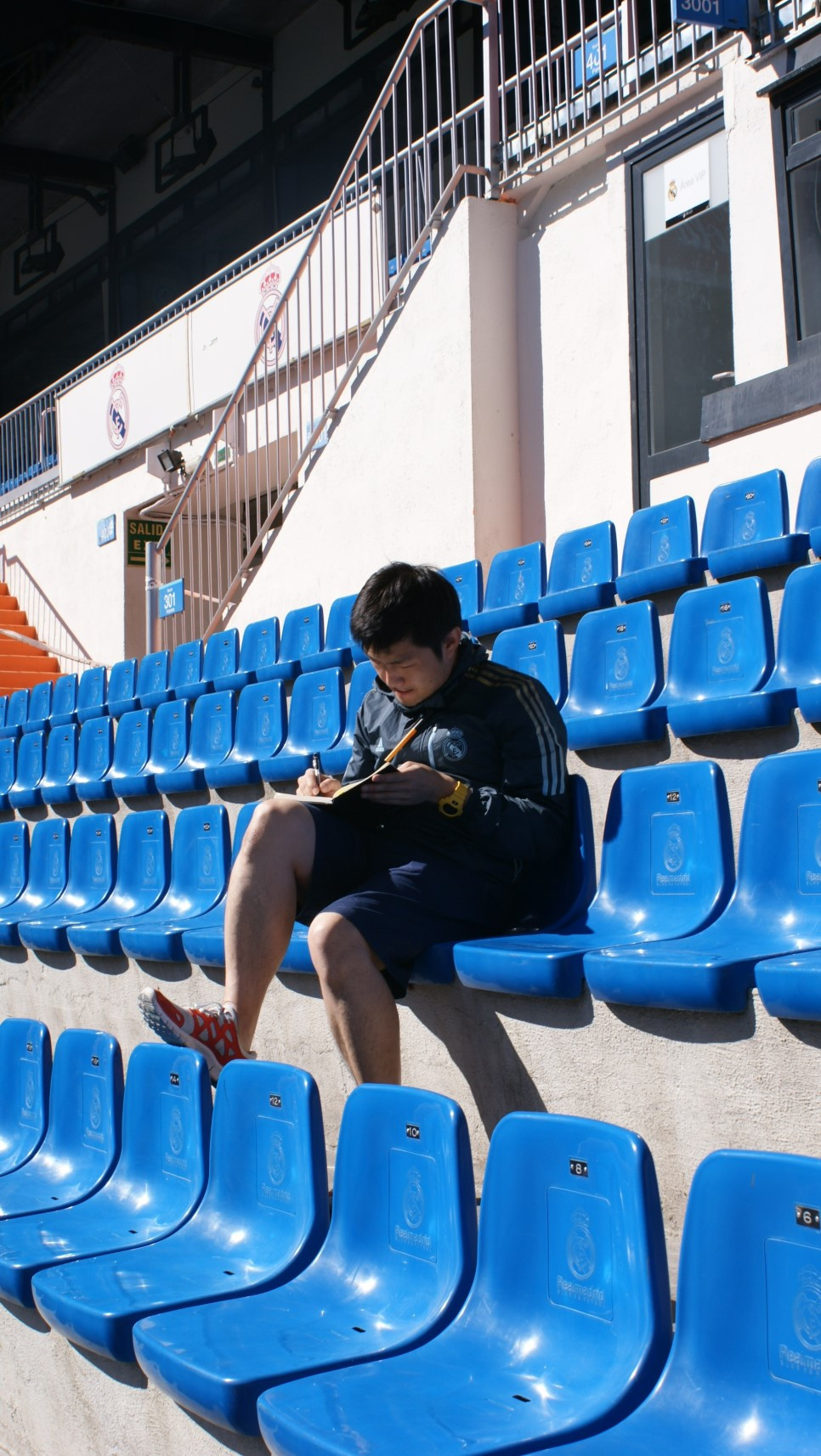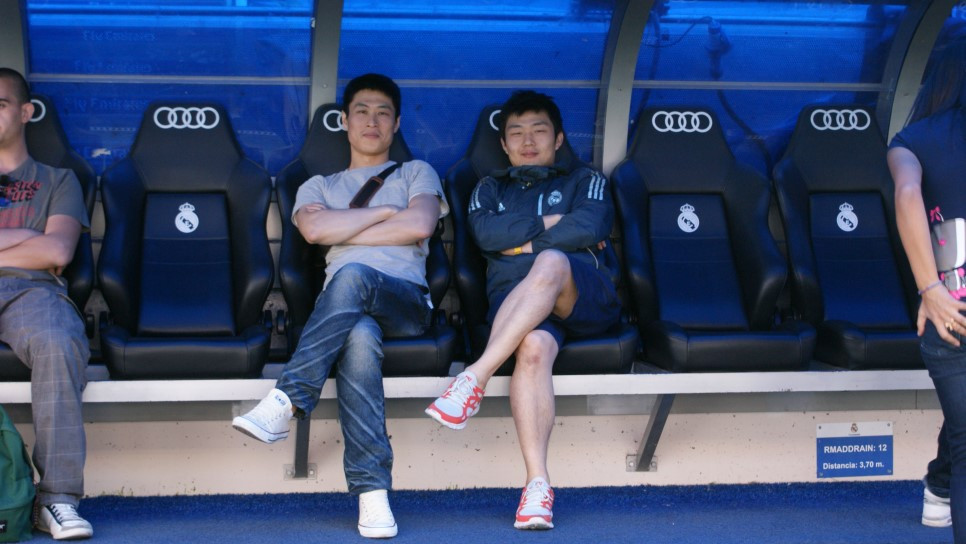 무리뉴처럼 포즈 잡아봤다. 실제 감독과 선수들이 경기를 하는 벤치다. 무리뉴 혹 호날두와 엉덩이의 온기를 나눈 사이가 됐다.