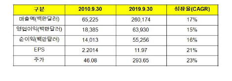 <아래의 Apple의 과거 10년간 실적 추이를 보자>