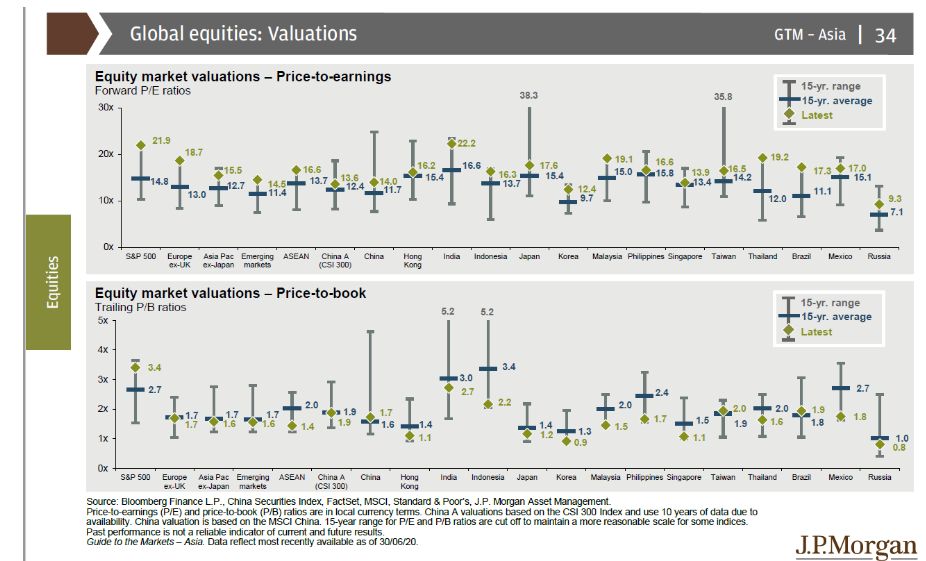 우리는 기대수익률이 높은 국가를 선택해서 투자해야 한다. 어디가 가장 높을까? 시가총액기준 가장 큰 은행인 JP Morgan에서 분기별로 발간하는 ‘Guide to the market’을 참조하면 답을 얻을 수 있다.
