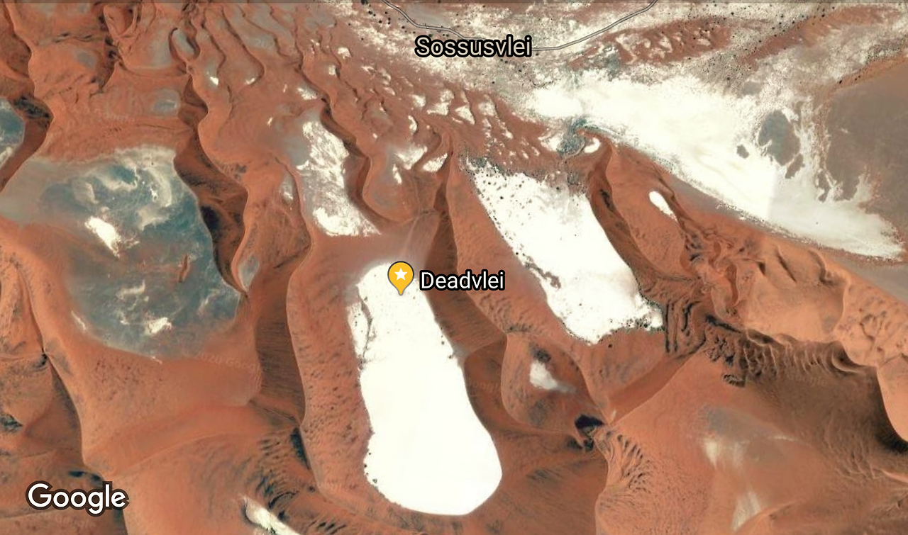 사구로 둘러싸인 둘러싸인 분지 형태의 죽은 계곡, 죽은 호수 데드블레이Dedvlei.
