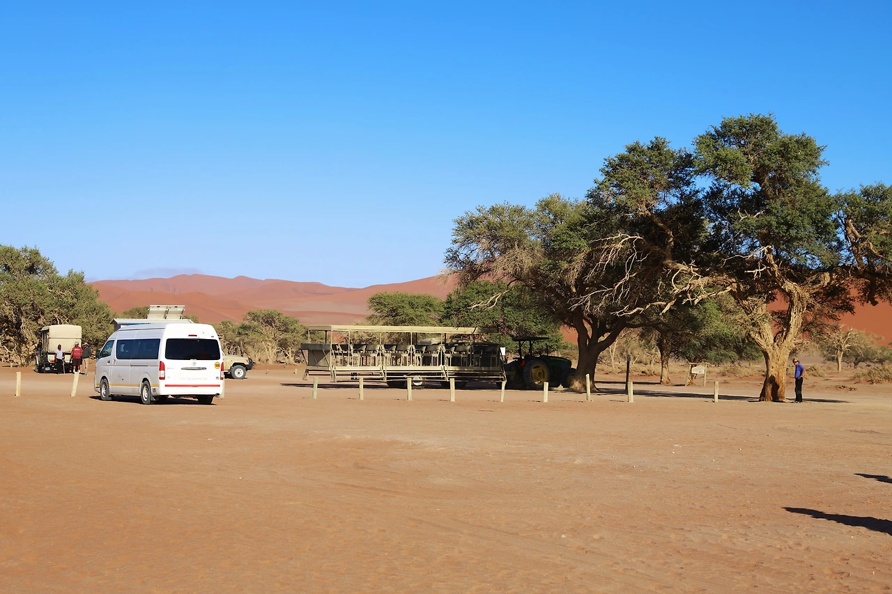 이른 아침 듄 45에 올라 일출을 보고 데드블레이를 트레킹 하기 위해 버스에 올라 출발한다.