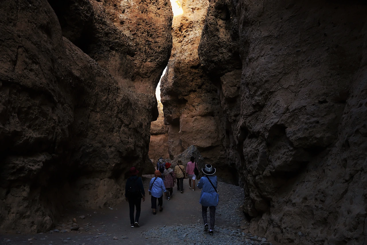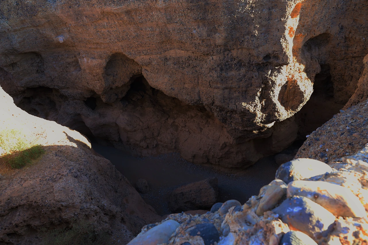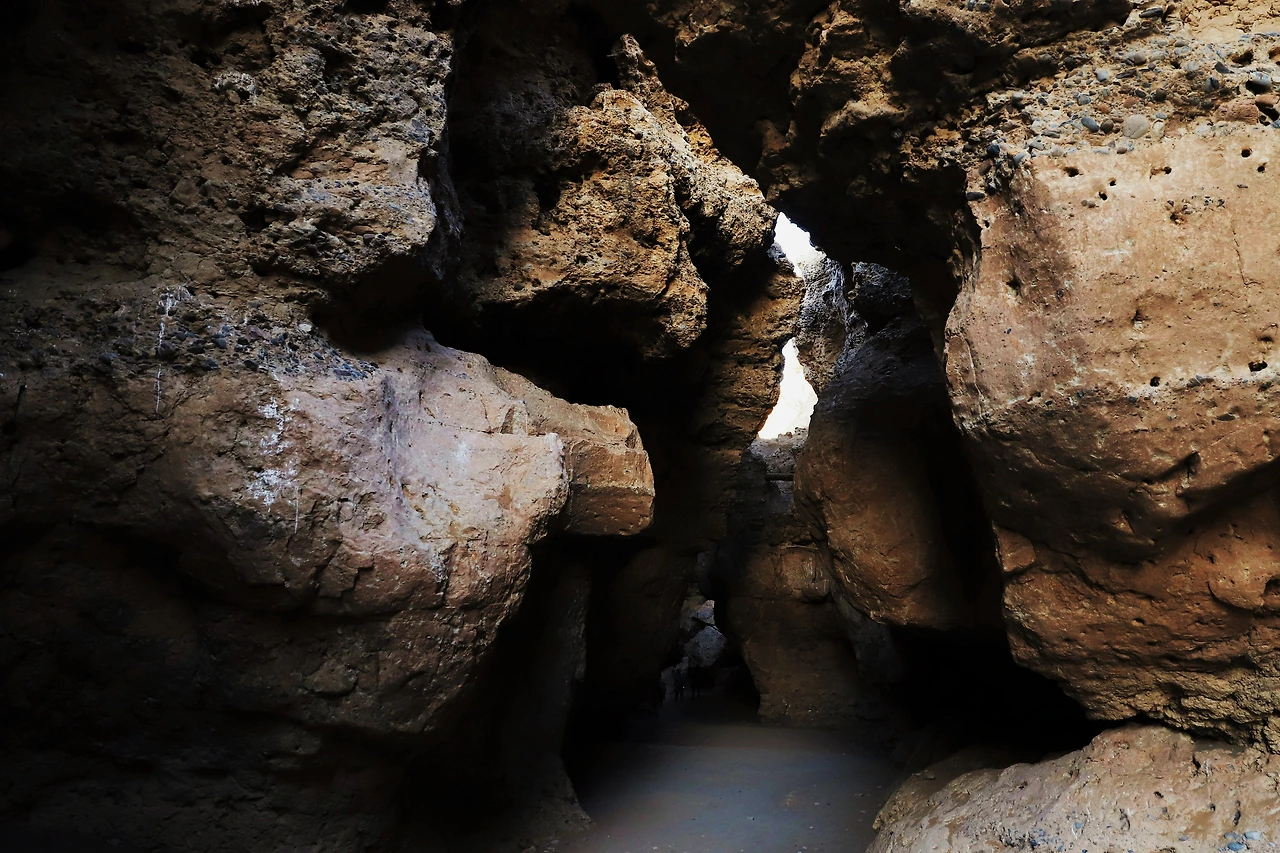 홍수가 꿈틀거릴 때마다 침식과 퇴적물 이동이 반복되어 만들어진 사막 속 동굴이다.