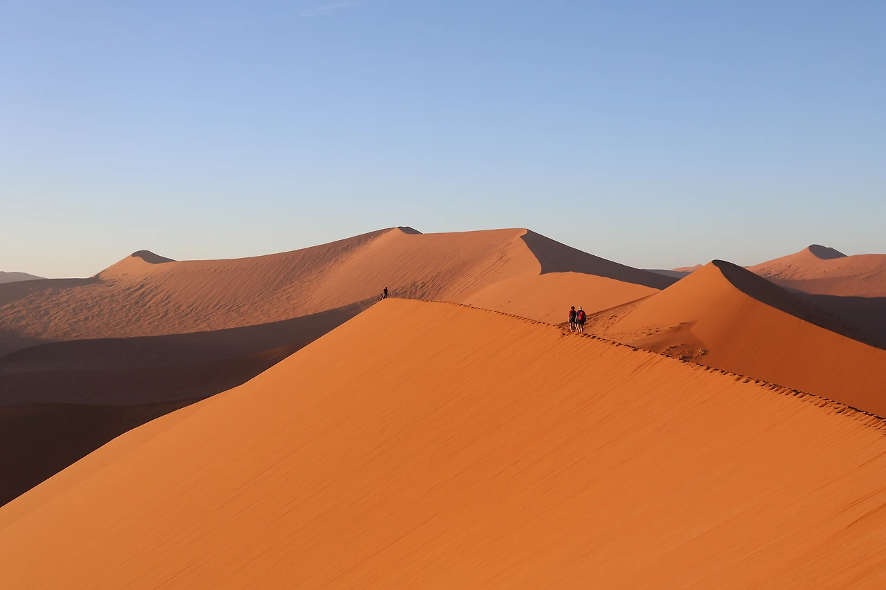2박 3일의 나미브 사막 투어를 마치고 이제 마지막 여행지만 남았다. 오늘 나미브 사막 로지를 출발하여 대서양 연안 왈비스 베이를 거쳐 스와콥문트까지 버스로 이동한다. 독특한 형태의 로지와 주변의 적갈색 자갈 사막과 이별이다. 듄 45에서 이어지는 끝없는 사구, 사구 발달로 막혀버린 마른 호수 데드 블레이, 한눈에 담을 수 없는 광활한 사막을 가슴에 묻고 떠난다. 그 무겁고 고운 모래가 바람에 날리 만들어 내는 곡선은 그 무엇과 비교할 수 없는 모습이었다.