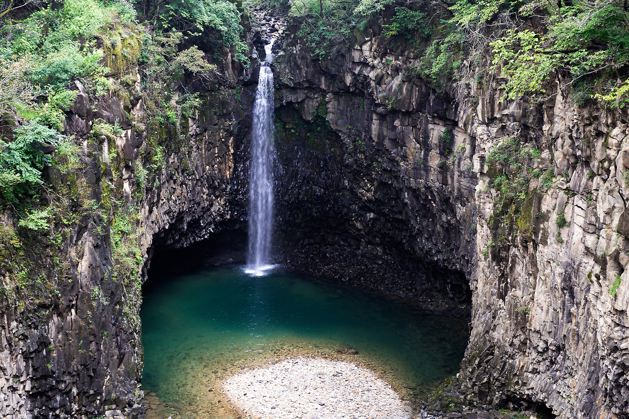 가는 물줄기가 주상 절리를 타고 흐른다.