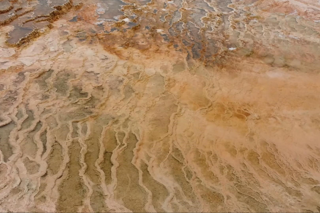 온천수에 포함된 석회질이 쌓여서 만들어진 다양한 지형들