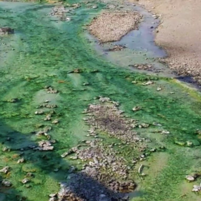 오래전에 물이 마르고 흰색으로 변한 듯~