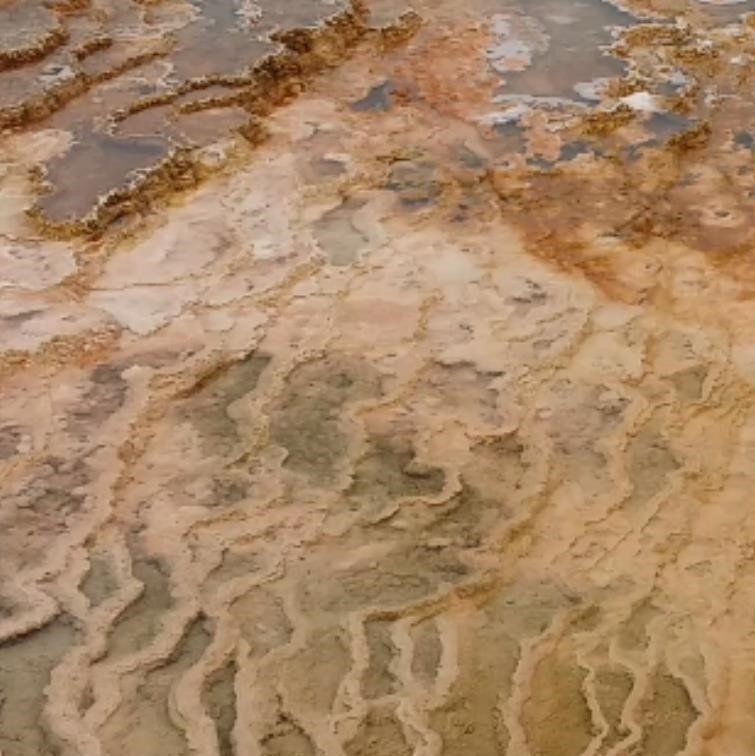 초기에는 갈색이나 오렌지색을 띠다가 물이 마르고 세월이 흐르면서 점점 흰색으로 변한단다. 수증기와 함께 온천수가 흐르고 지금도 계속 석회석 성분이 쌓이고 있는 중이다.