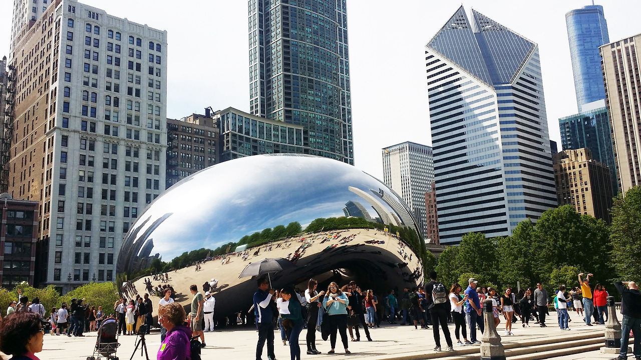 시카고 극장밀레니엄 공원의 대표적인 조형물은 클라우드 게이트 Cloud Gate.