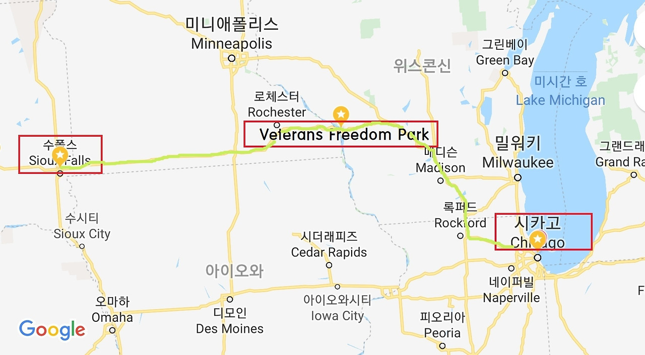수폴스에서 90번 도로를 타고 시카고로 향한다.