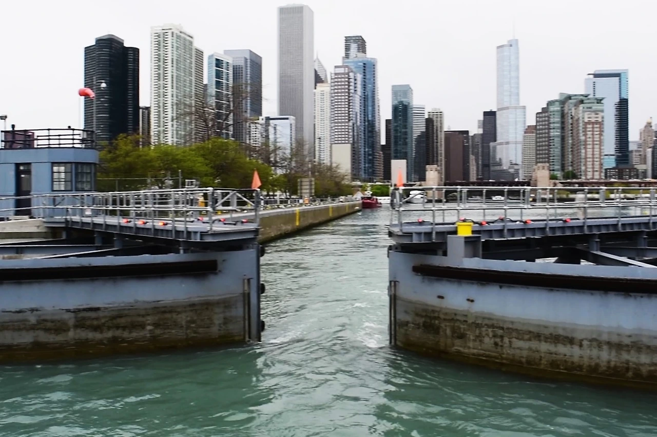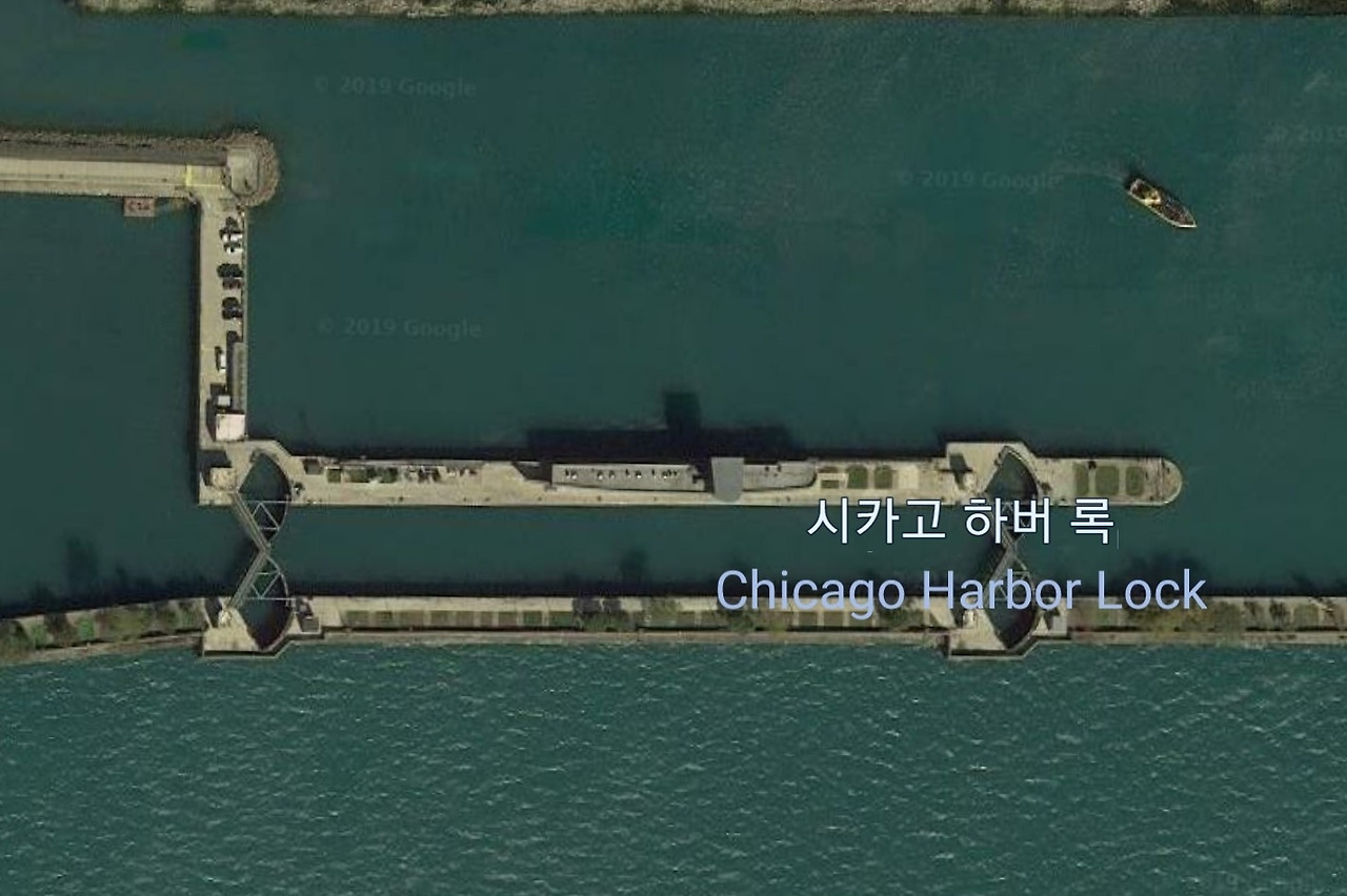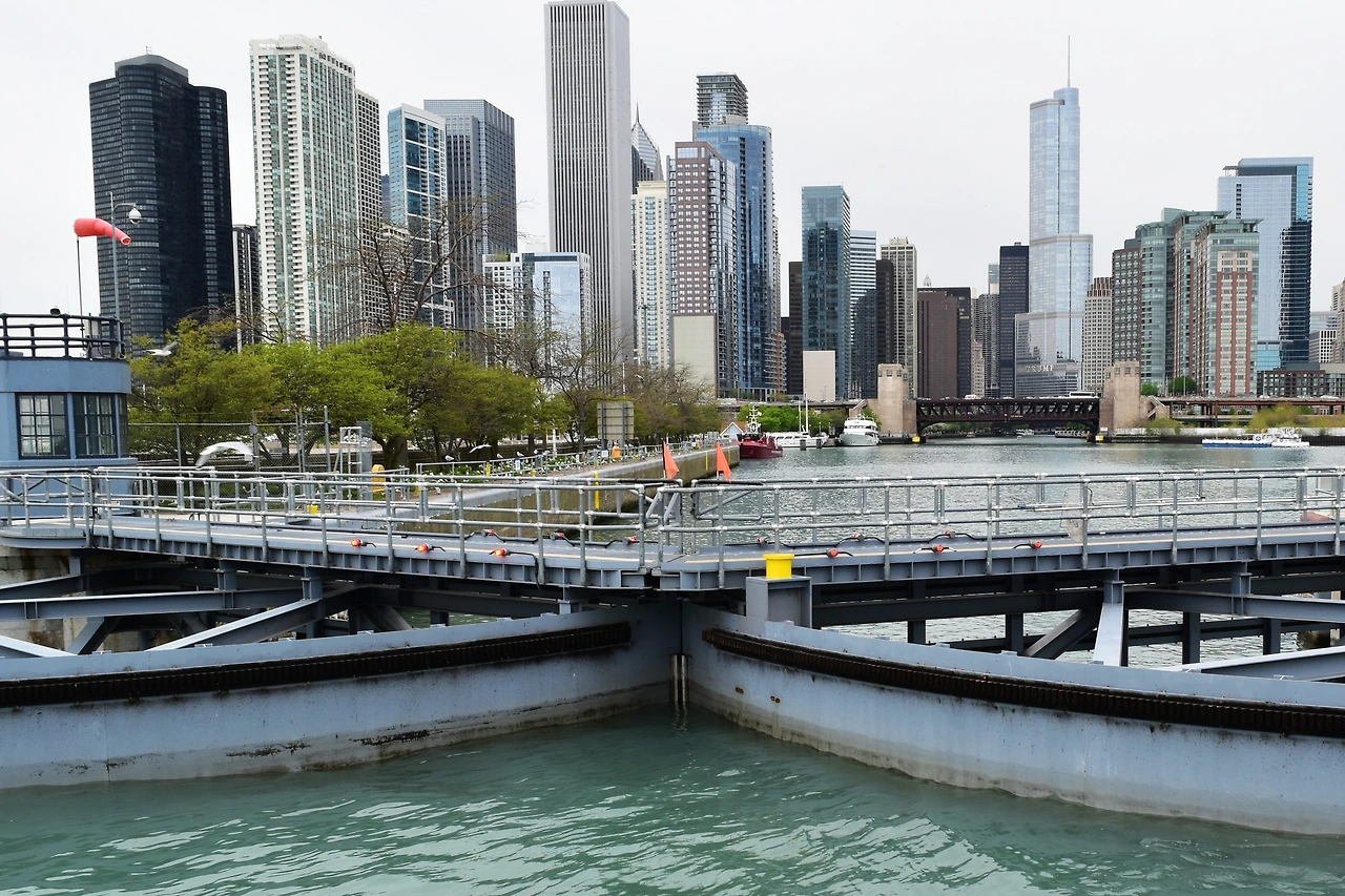 미시간호와 시카고 강의 수위 차 때문에 만들어진 소규모 갑문.