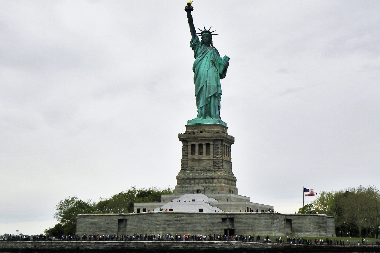 미국 독립을 도왔던 프랑스가 미국 독립 100주년을 기념하여 선물한 조형물. 조립하는 데 4개월이 걸렸다는 높이 34m나 되는 뉴욕항의 상징이다. 머나먼 이국에서 아메리칸드림을 꿈꾸며 들어오는 이민자의 대문 역할을 하던 곳이다.