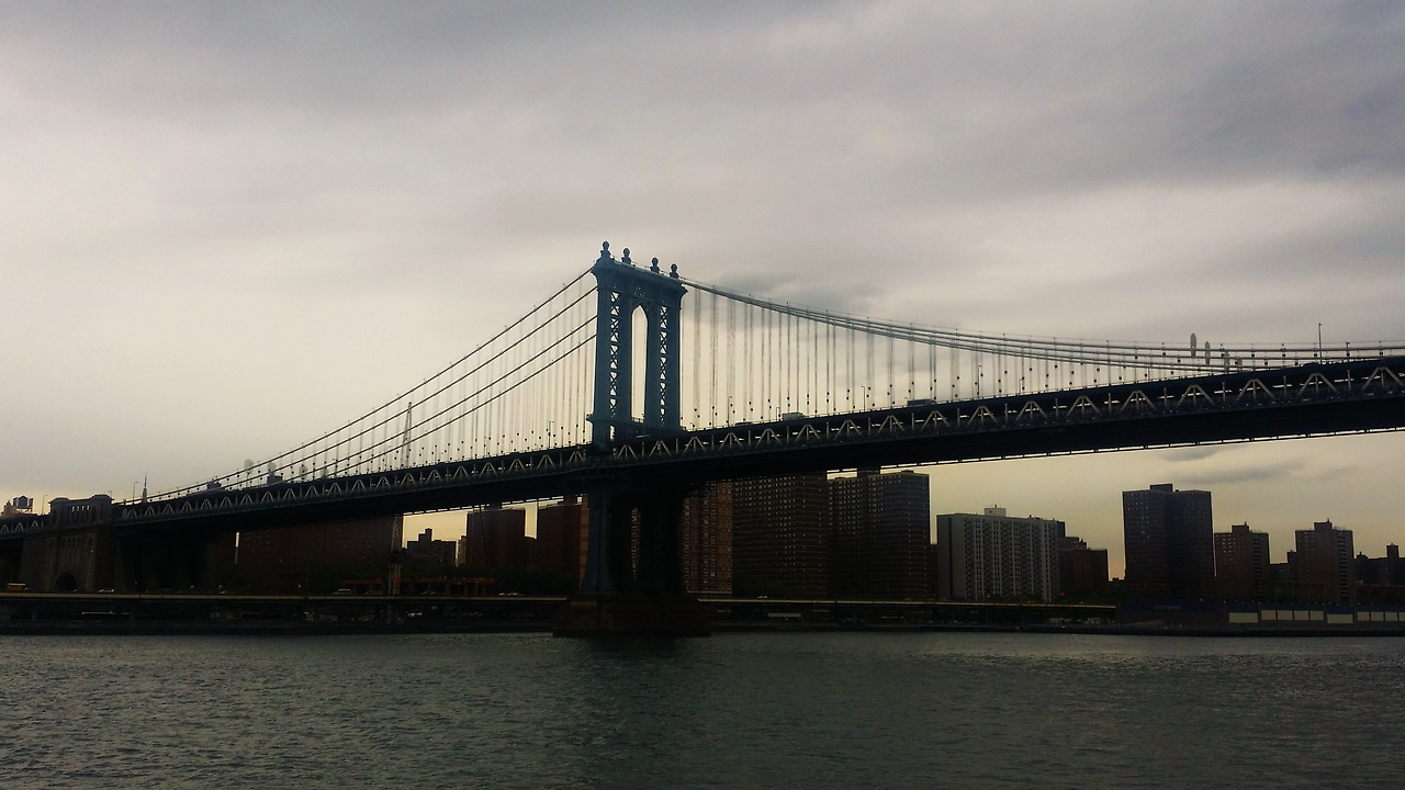 맨해튼 다리 Manhattan Bridge의 흐린 노을