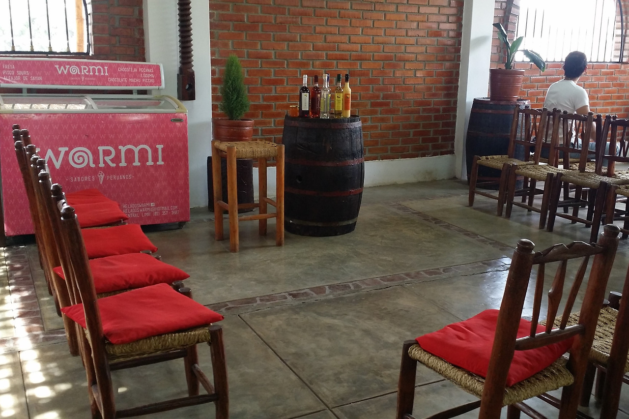 포도를 수확해서 발로 밟아 포도즙을 만들던 작업장에 둘러앉았다. 안내인이 이곳 와이너리도 19세기에 와인과 피스코를 생산하던 곳이라며 설명을 이어간다. 가이드의 설명은 귀에 들어오지 않고 술에 관심이 없으니 시설을 살펴본다.
