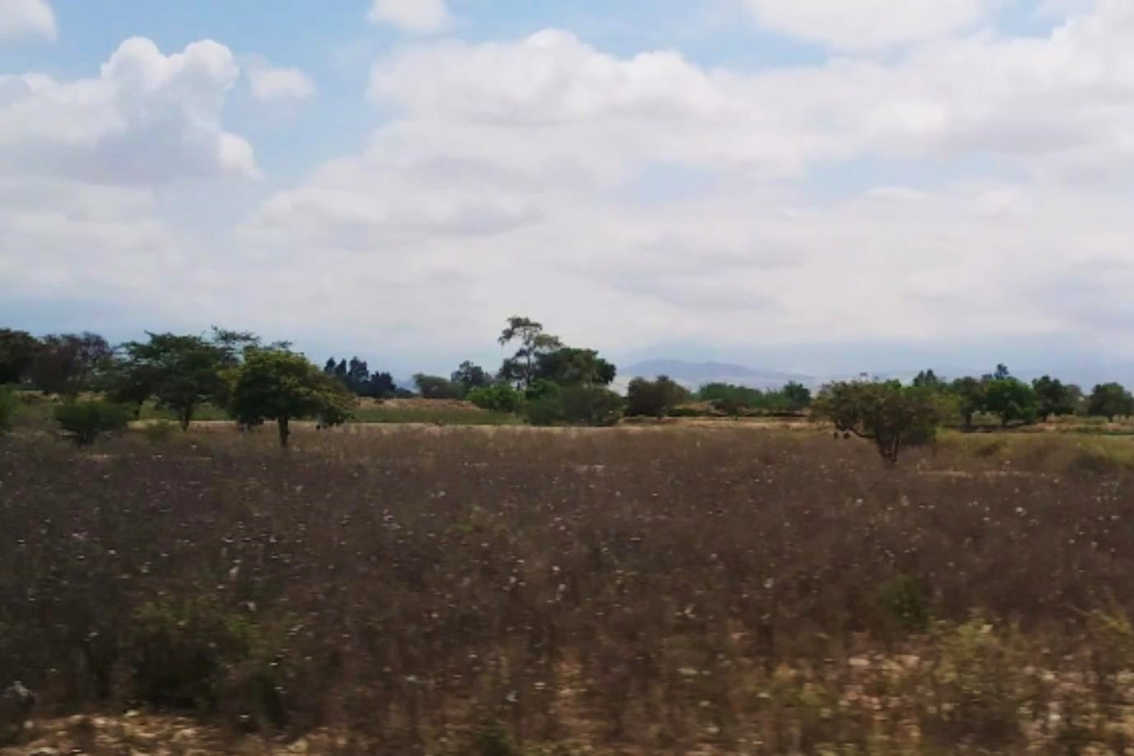 막 꽃이 피어나는 시기인데 목화밭이 가뭄으로 바싹 말라죽어가고 있다.