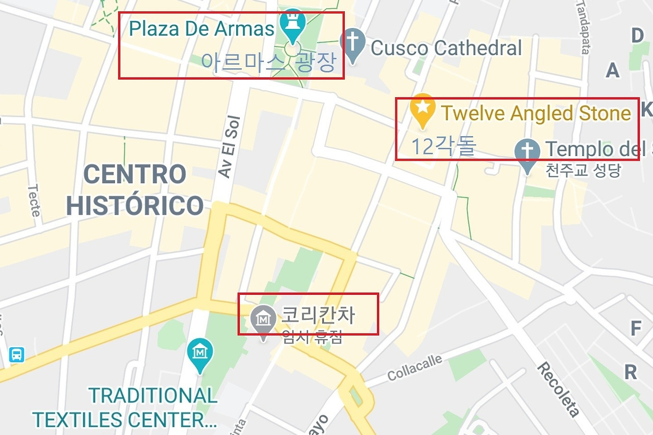시내 아르마스 광장이 가까워지니 멀리 산 중턱까지 집들이 빼곡하다. 언덕 위의 허름한 붉은 집과 복잡한 골목길. 유럽을 닮았으나 같지 않은 모습의 쿠스코이다. 잉카 제국의 수도였던 쿠스코(세계문화유산 - 1983). 원주민 케츄아어로 쿠스코는 '배꼽'을 뜻한다. 태양신을 모시는 신전이 자리하던 남아메리카 잉카 문명의 중심지라는 뜻이다. 이곳에서 최고로 받들던 태양신, 그를 위한 신전을 그 신선한 땅에서 잉카 문명을 꽃피웠으나