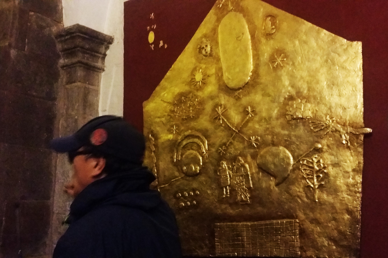 성당 벽에 걸린 예수상은 백인 예수님이 아닌 원주민을 닮았다. 잉카인의 생활 모습을 담은 황금 장식판. 원주민의 옛 생활 모습이 그려져 있다고. 현재 성당 벽에 걸린 것은 복제판이고 진품은 바로 옆 코리칸차 박물관에 모셔져 있다고 한다.
