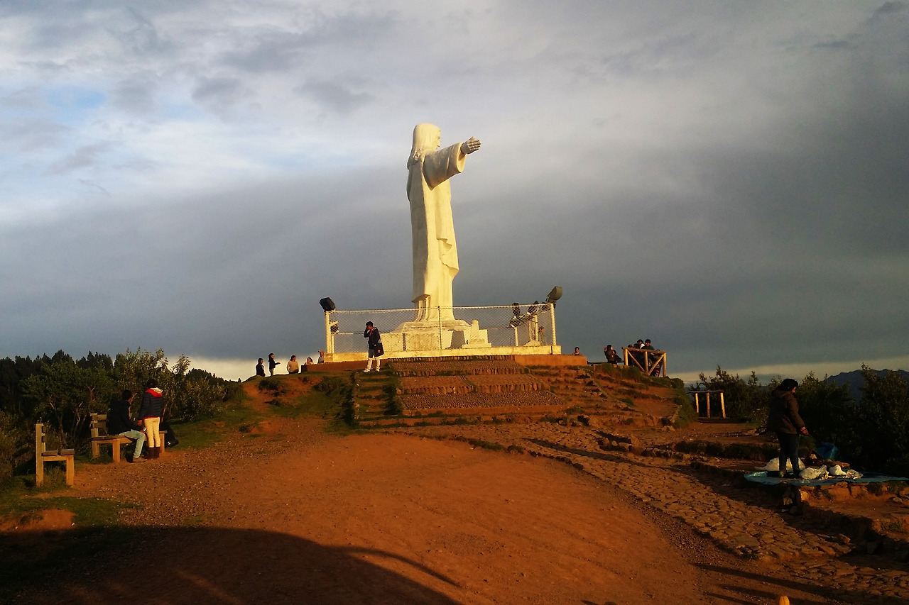 쿠스코 언덕에 우뚝 솟은 거대한 예수상.