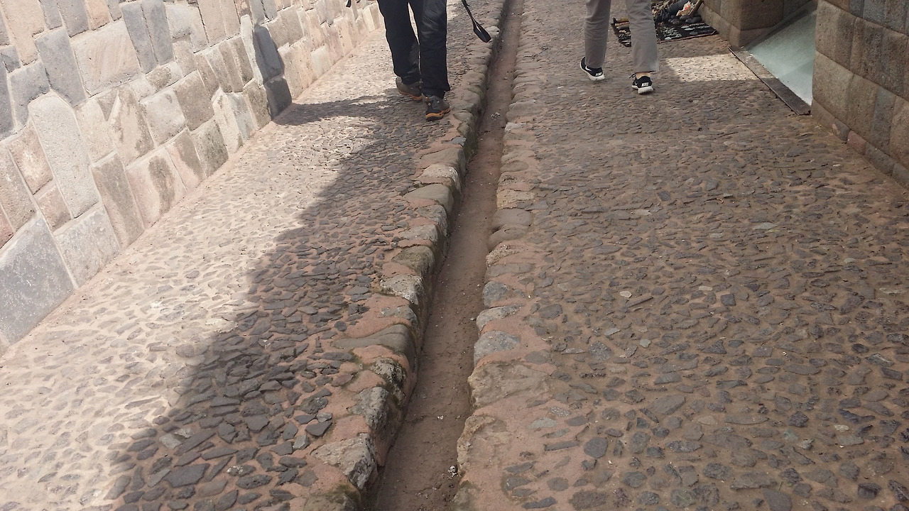 고대 잉카인이 쌓아 올린 돌담 위에 스페인은 그들의 집을 건축하였다.