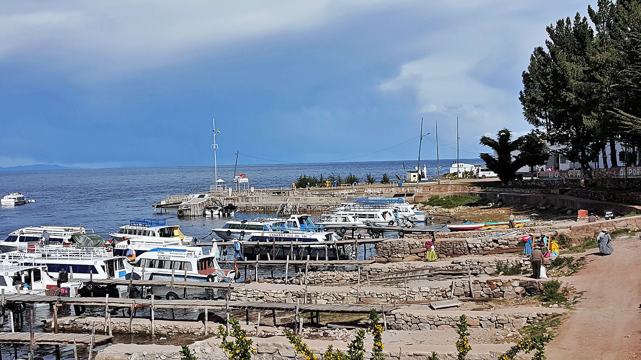 티티카카호 코파카바나 항의 아침