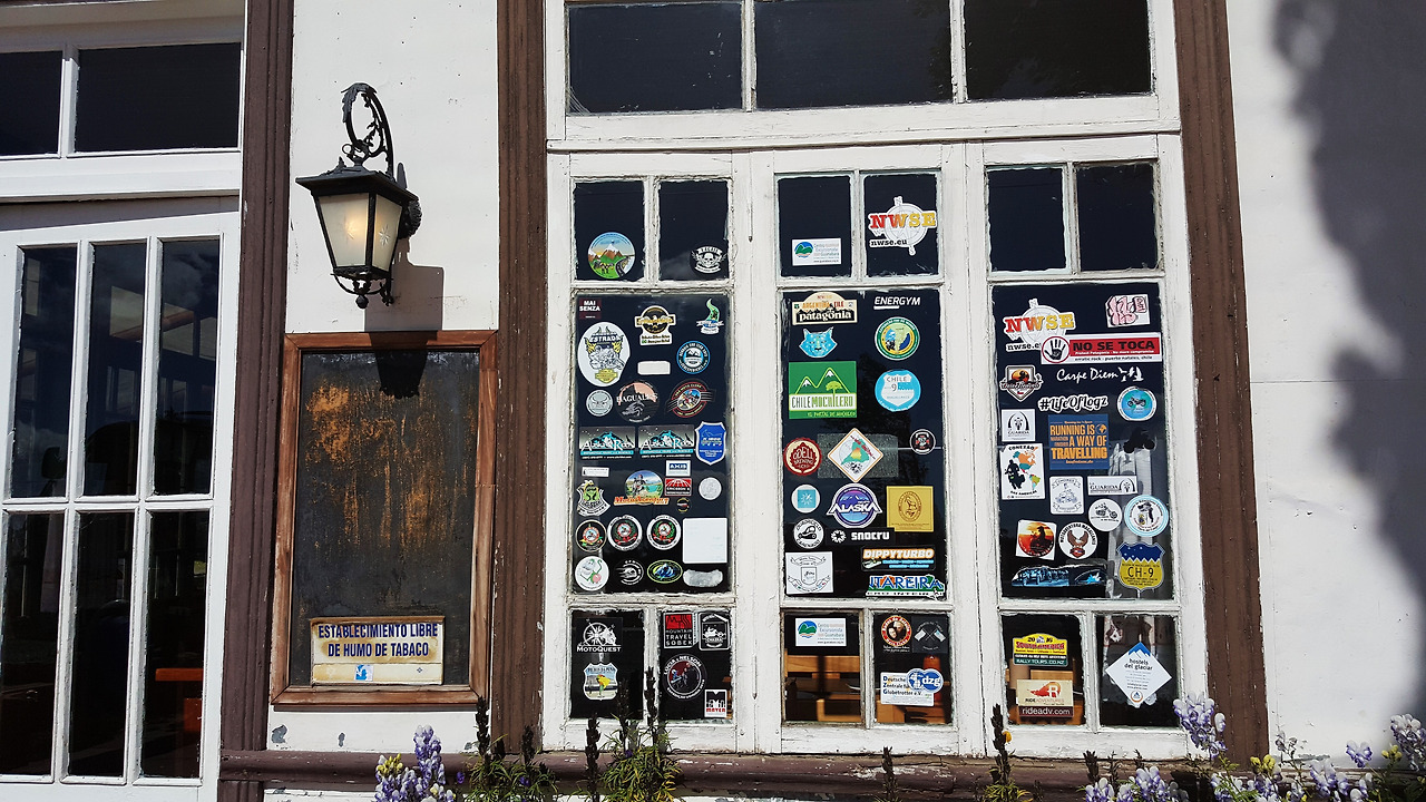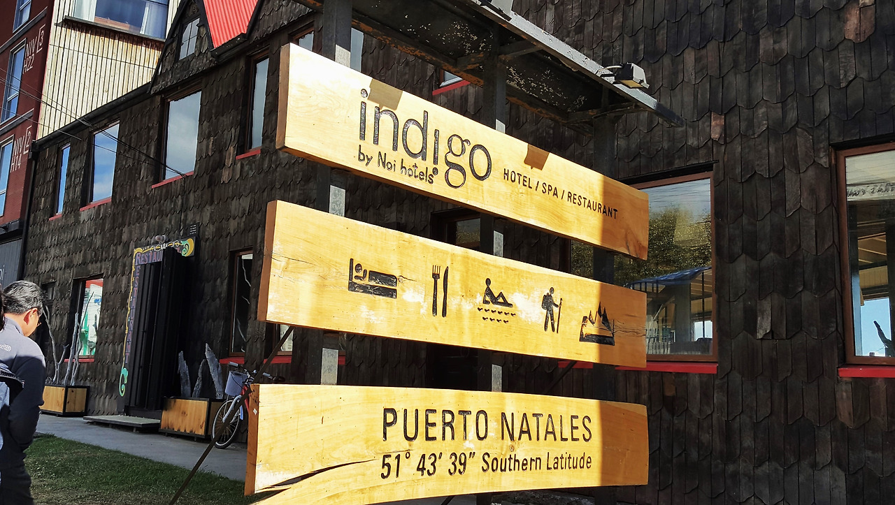 바로 옆 호텔 입간판에 푸에르토 나탈레스 위도가 적혀 있다