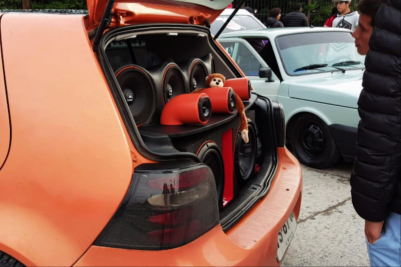 트렁크 열린 자동차의 오디오가 쿵쾅쿵쾅.
