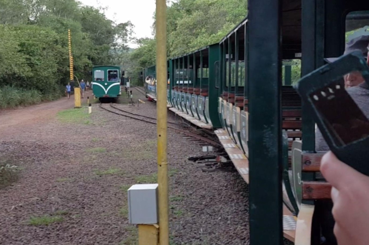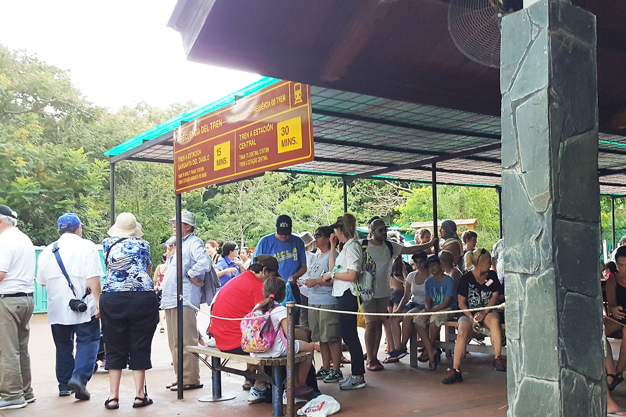 열차는 악마의 목구멍으로 가는 관광객으로 가득하다.