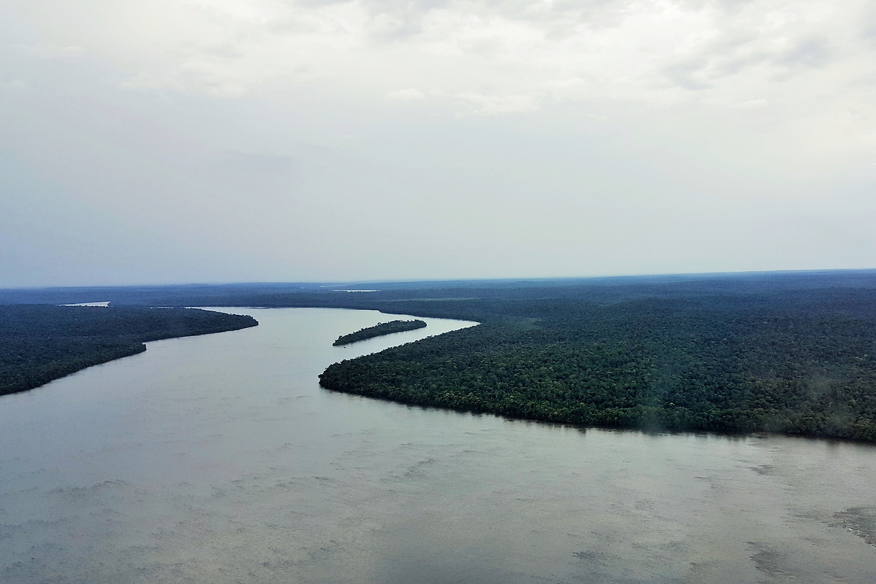 사람이 많지 않았다. 티켓을 구입하고 잠시 기다려 헬기에 올랐다. 굵은 빗 방울이 뚝뚝 떨어지는데 하늘로 오르니 아득히 열대 밀림으로 가득 채운 직선의 지평선이 나타났다. 흐린 날씨 때문에 밖이 잘 보이지 않아 창문을 열고 요란한 헬기 소리와 함께 아래를 굽어 본다. 푹신한 초록 이불을 펼쳐 놓은 듯하다. 아마존 밀림까지 이어지겠지.